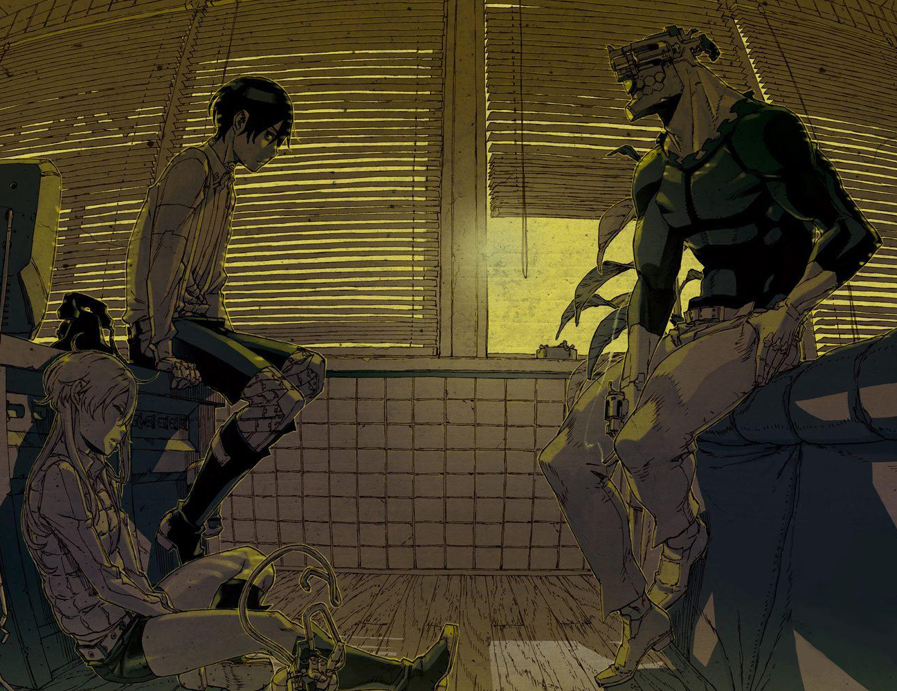 之后被警备局的布罗姆维尔委托捉拿恐怖组织斯匹次卑尔根的中介人萨雷沙甘,并从他的口中得知了自己在部队里的专属技师维克多的事情。回到住所之后遭到了派帕和赛文的袭击,失去了左臂。