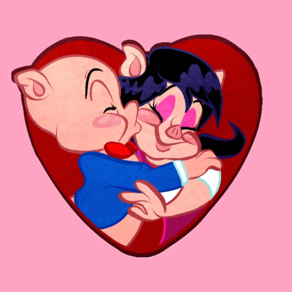 - 佩妮猪最初登场于《Porky’s romance》中,她在里面的形象并不像现在这样甜美体贴,她反倒是一个拜金且刻薄自私的猪,这一点通过猪小弟往后的幻想由此得知她的本性如下所示
