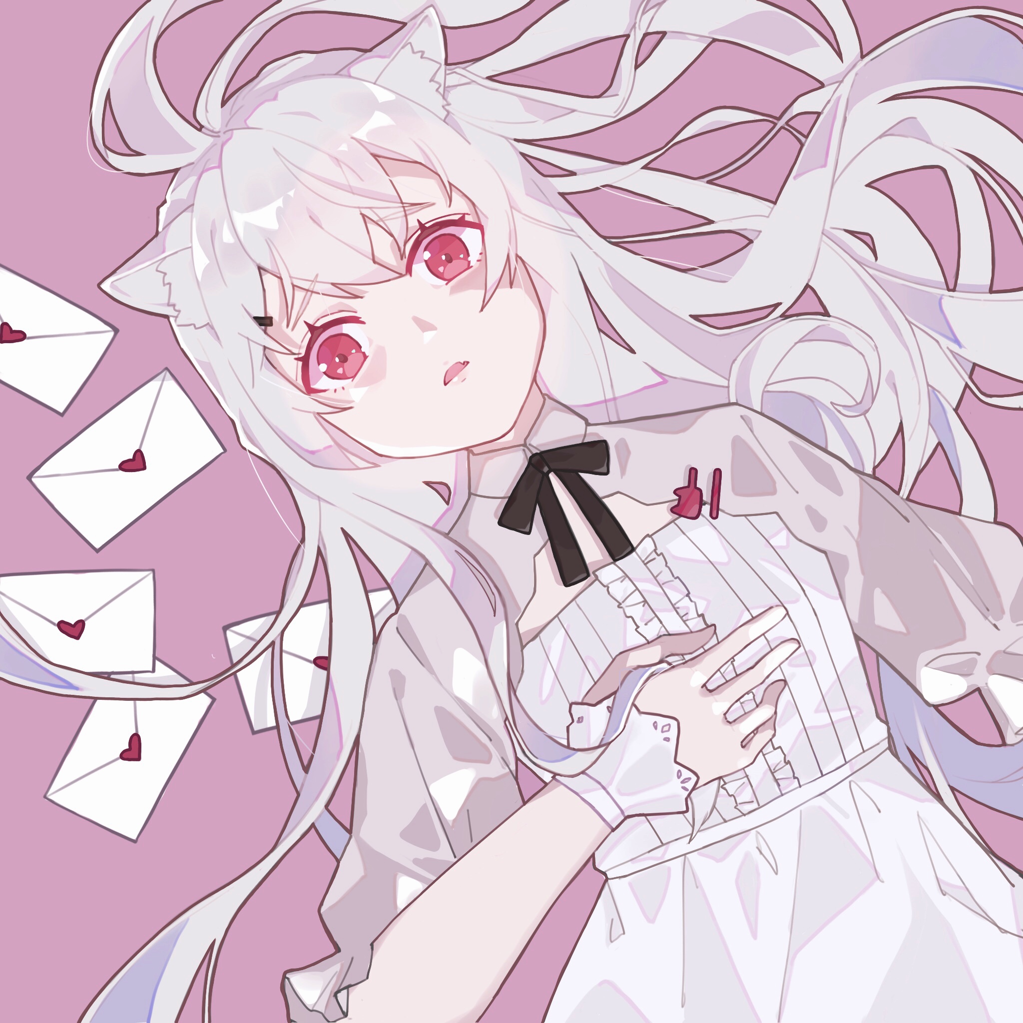 初始服:头戴白色头巾身着白色连衣裙的白发红瞳少女(有时会取下头巾,露出猫耳。头巾是在人类小镇生活时使用的伪装取下可以散热)
