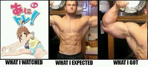| “ | 自从看了这部锻炼番,我身体越来越虚了。 | ” |