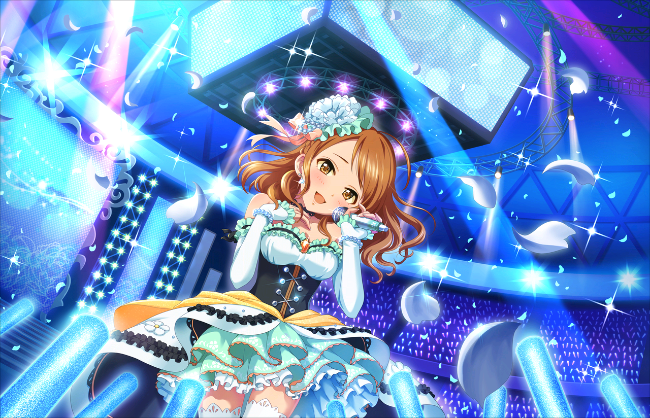 SRare[闪耀少女]:2012年8月10日扭蛋「白金试镜」的卡片。涩谷凛、神谷奈绪也拥有同系服装的卡片。CGSS中为开服常驻SR。