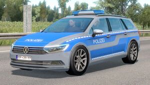 大众CC和大众帕萨特Variant在游戏中作为路人车出现。由于SCS没有版权,车标被魔改。