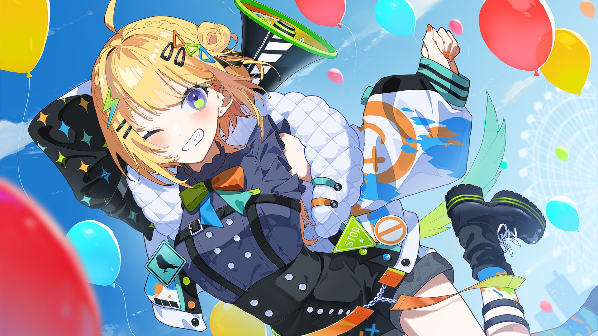 元気でうるさくフレンドリーな、テンション高めのおしゃべり大好き女子。 人見知りせず誰とでも楽しく話すタイプだが、人間関係の距離感には人一倍敏感で時折ひとりで反省会をしている。 オーダーメイドの拡声器がトレードマーク。 充满元气、吵吵闹闹、活力四射、喜欢和人聊天的和善女孩子。 虽然是不怕生,不论和谁都能聊开的类型,但对人际关系的距离感却比常人还要敏感一倍,偶尔还会一个人开反省会。 量身定做的扩音器是其特征标志。 |
