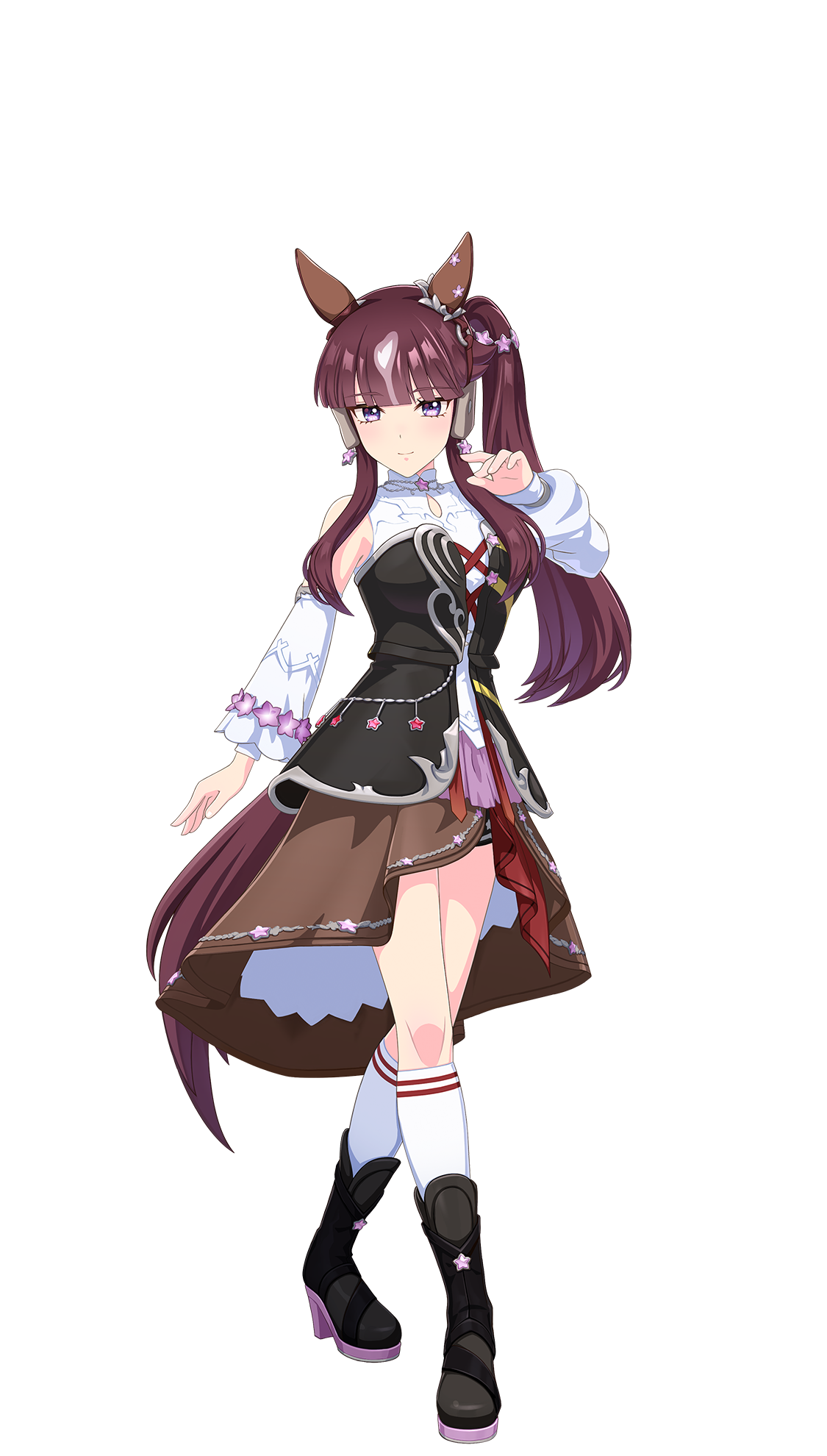 | 萌点 | 马娘、兽耳、真·马尾、挑染、关西腔、侧马尾、吐槽役、大小姐、白色及膝袜、中靴 | |