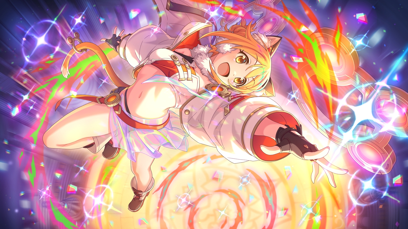 | 【物理】前卫,用火焰之翼粉碎敌人的元气女孩。 在战斗过程中使用着能增强自身攻击力的技能,释放出超强的一击,将任何敌人碾成齑粉。[1] | ||||||||||