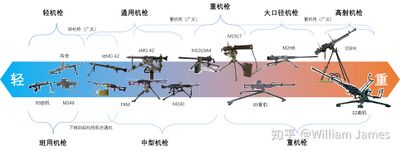 关于机枪定义的一张简图。上半部分为中国和原华约国家倾向使用的定义方式,下半部分是北约国家倾向使用的定义方式。