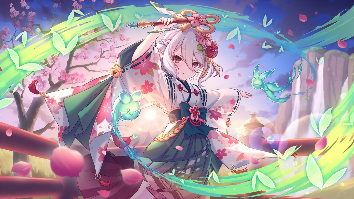 | 【物理】後衛,与狗狗在一起的新绿色游骑兵少女。 她能根据自身的攻击力为同伴提供强化物理攻击的技能与HP持续恢复状态,并展开屏障支持同伴,带领我们走向羁绊的胜利。[7] | ||||||||||