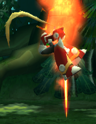 发射可以无视地形差行进的火焰波浪,有着可以点燃各种易燃物的超高温度。集气攻击则是同时朝自身前后发射出温度更高的火焰波浪。但最大的缺点是只能在地面中使用