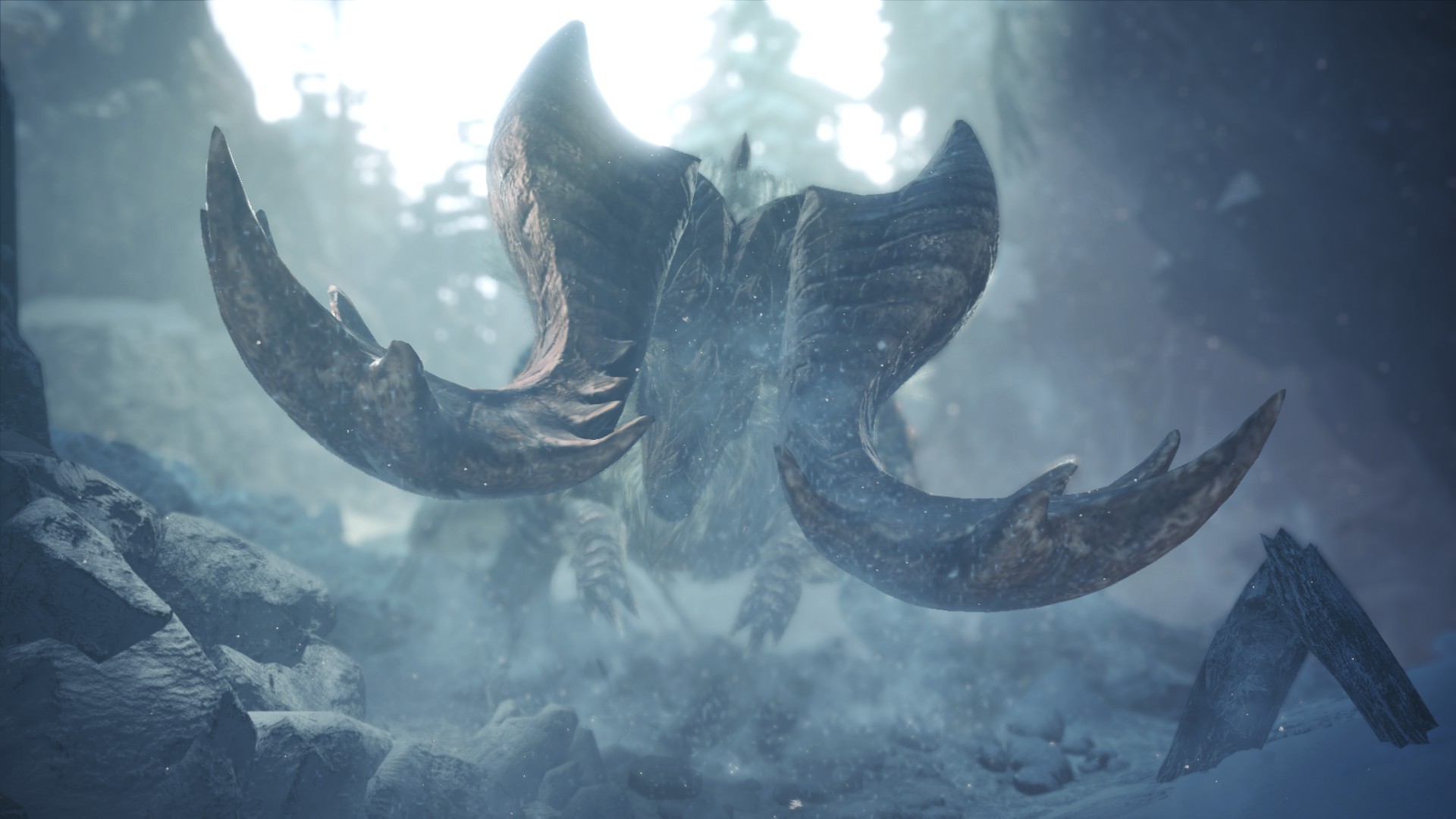 - 在冰原地形,猛牛龙可以挖出带有冰属性的巨大带雪岩块。