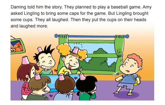 三年级起点六年级下册(2012版)M8U1A2中大明说艾米让玲玲带棒球帽但是玲玲却带来杯子(纸杯)玲玲:“我听错英语不行吗?”