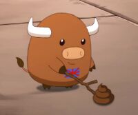 - 《四驱兄弟》:星马豪踩到狗粪,被鹰羽二郎丸起外号“狗屎大笨蛋”。