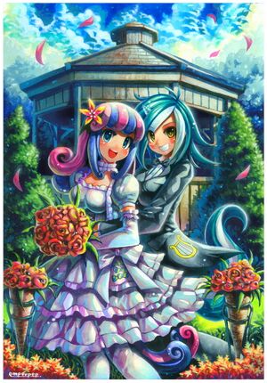 在小马国女孩3的官方短片3中,天琴和糖糖(虽然不是同一角色,但角色设定相差无几)因为友谊大赛而反目。 为了得到友谊大赛的参赛资格,二人使出了浑身解数,十八般才(yan)艺层出不穷。 然而这样的表演却吓跑了不少观众,最后二人都没选上。 不过因为都没选上,她们就又和好了,可喜可贺。 宽屏模式显示视频 |