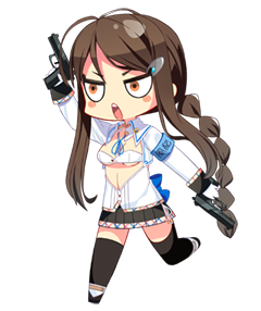 | 萌点 | 麻花辫、斜刘海、长鬓角、呆毛、吊眼、袖章、手套、超短裙、黑色过膝袜、短靴、大蝴蝶结、双持武器、手枪、匕首、风纪委员、护短、酒品差 |