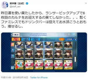 FGO刚出的时候凹酱虽然在其中配了冲田总司,但并没有去玩,直到被某个阿周那厨的友人安利之后回忆起了配CCC时的点点滴滴,之后就一发不可收拾地入坑了FGO。