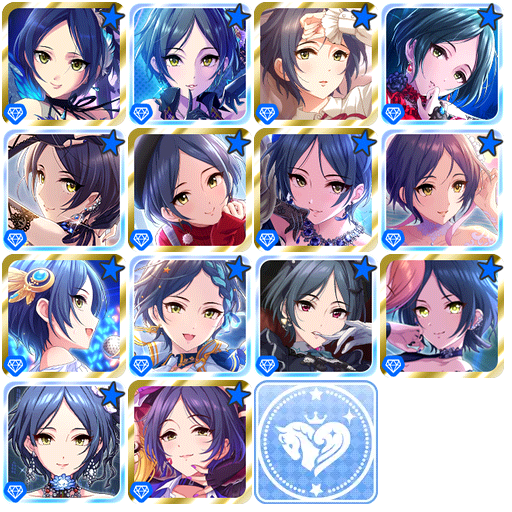 SRare[苍翼少女]:2013年4月9日「苍翼少女 扭蛋」的卡片。CGSS中为2015年11月12日「Cinderella Caravan」活动限定上位SR。