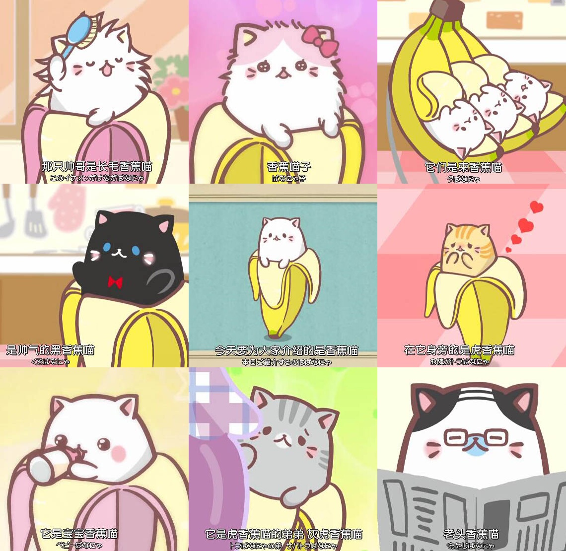 | 10 | ばなにゃとあこがれのまんまる にゃ | 香蕉喵与憧憬 | 黑白香蕉喵 苏格兰香蕉喵 曼切堪香蕉喵 | |||