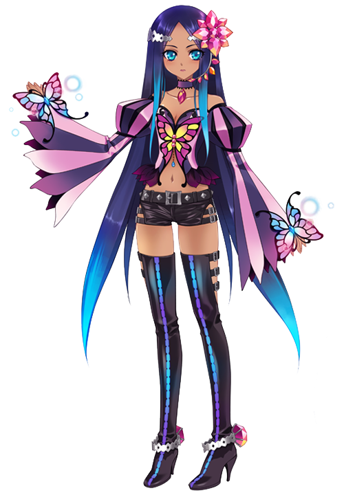 | 萌点 | 妖精、掌上娘、歌姬、姐姐、黑色皮肤、发饰、人字刘海、超长发、额饰、项圈、泡泡袖、分离袖子、广袖、热裤、过膝靴、高跟鞋 |