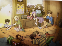 Omori的好友之一,凯的哥哥。温柔而富有组织力,多才多艺。 | Omori的好友之一,性格内向自卑。喜欢养植物,有一台用于记录伙伴欢乐时光的相机。 | Omori的姐姐,温柔善良,在脑内世界中负责为大家准备野餐。 |