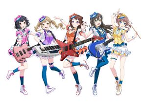 Poppin'Party是《BanG Dream!》企划下的第一支乐队,活跃在企划内的多媒体作品中。乐队代表色為#FF3377和#FFDDEE。