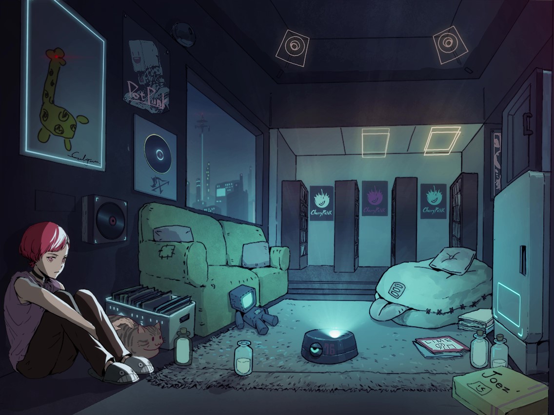 702年09月18日(cafe),晚上睡在柜台的Cherry梦见了过去哭醒了。Xenon希望可以换出来Neko。因为帽子缩紧,Cherry又吃了Neko一次醋。