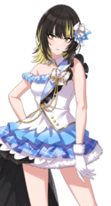 以狂放的黑色系朋克风格服饰与妆容为特征,打着脐钉(朋克系外形与田中摩美美相近),语言风格和举止粗野偏男性化带有不良少女的风范(这一点与西城树里相近),对制作人表现出厌恶与轻蔑,但对偶像工作态度十分认真(这一点与樋口圆香相近),实力优秀。