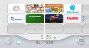 Wii是任天堂第一款拥有系统菜单的主机。在这个界面里,用户可以访问各种“频道”(应用程序),比如说在Wii商店频道(已停服)购买游戏,在Wii天气预报频道(官服已停运,但有第三方支持服务)看天气预报,还可以启动各种数字版游戏,修改主机的各项配置等。