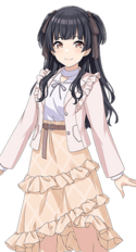 - 根据S.T.E.P.篇,曾在服装设计课上因作品得到公认严格的授课老师的赞扬而遭到嫉妒,被同学笑里藏刀的一句“这么可爱的话,怎么不去当个偶像试试?”刺激,所以在遇到制作人前几分钟正好在想偶像的事。