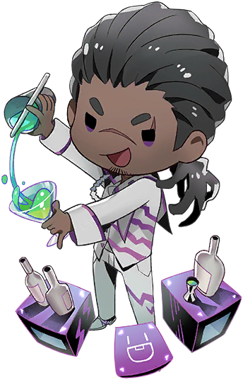 酒保、店主、褐色皮肤、伤疤、脏辫、低马尾、黑社会人士、情报商、爱财、调皮、贝斯