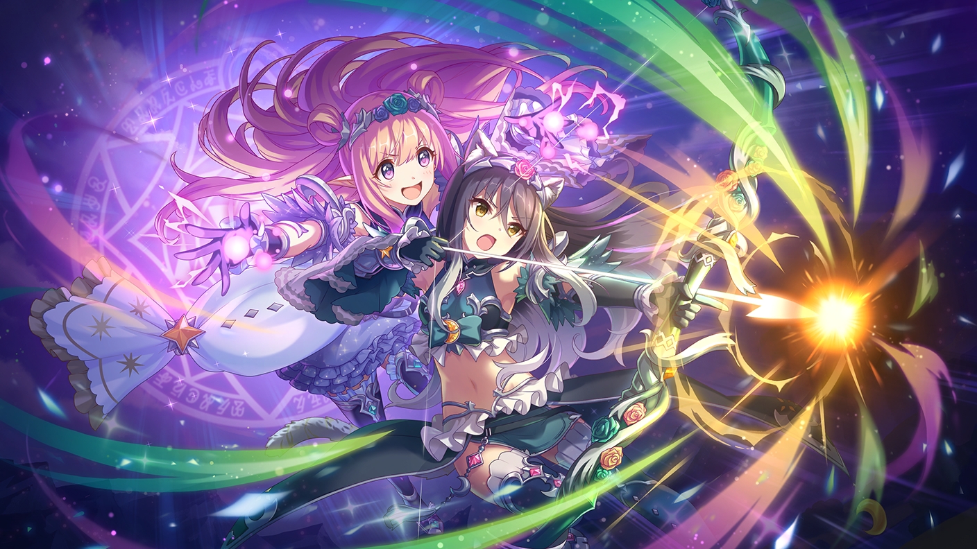 | 【物理】[3]后卫,发挥真正羁绊之力的好姐妹。 运用敌人数量越多威力越高的攻击与强化周围友方的技能,将拦路的敌人一网打尽。 | ||||||||||