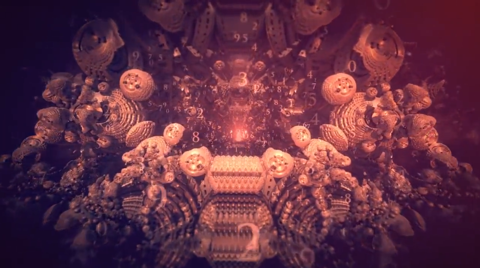- 出現的各個公式:曼德博集,康托集,門格海綿,謝爾賓斯基曲線,龍形曲線,科赫曲線,巴恩斯利蕨,可數集(閃過的denumerable set字樣),燃燒船分形,帶內部和不帶內部的茱利亞集,牛頓分形,李亞普諾夫分形,萊維飛行和布朗運動