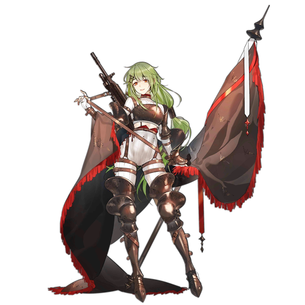 設計MK48時SA考慮到機槍應該有大姐姐的感覺,於是便加入了姐系的元素。而綠髮則是因為當時槍娘中並沒有這種髮色。目測3測那會開始設計的,公測有加入綠毛手槍和綠毛機槍AAT52