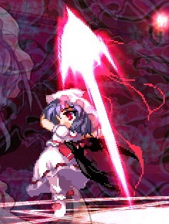 蕾米的符卡:神槍「Spear the Gungnir」 是投出超高速、甚至變化成為槍的彈幕的符卡。