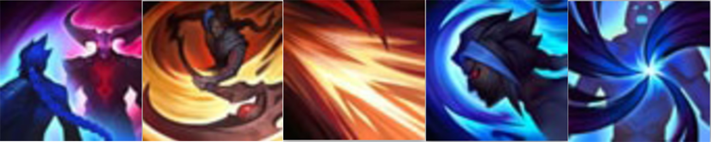最終我們得出的結果,就是讓慨影在獵殺遠程英雄時逐步解鎖變身為刺客的能力,並讓他在與近戰英雄作戰時逐步解鎖變身為暗裔的能力。這一點看起來比較合理:與影子融為一體的刺客渴求獵殺高價值的目標,而暗裔本身只是想要和任何擋在前面的人大幹一場(通常是坦克和半肉)。開發者們並不想要讓這個系統有太多的懲罰性設計,所以在你不小心解鎖了錯誤變身時可以選擇等待一小段時間解鎖自己真正想要的狀態,而不是為了一個錯誤的選擇而後悔上三十多分鐘。