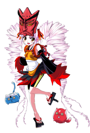 追傩酱是背负着传说中拥有退治恶鬼的宿命的“方相式”使命的少女,是在节分日诞生的,性格开朗明快操着一口关西腔的14岁女孩子。她父亲那边的祖先是修验道的开创者:役小角(役行者),母亲那边的祖先则是鬼一法眼(鞍马天狗)。虽然有如月追傩这个本名,但作为术士,总是以“役追傩”的名号活动着。