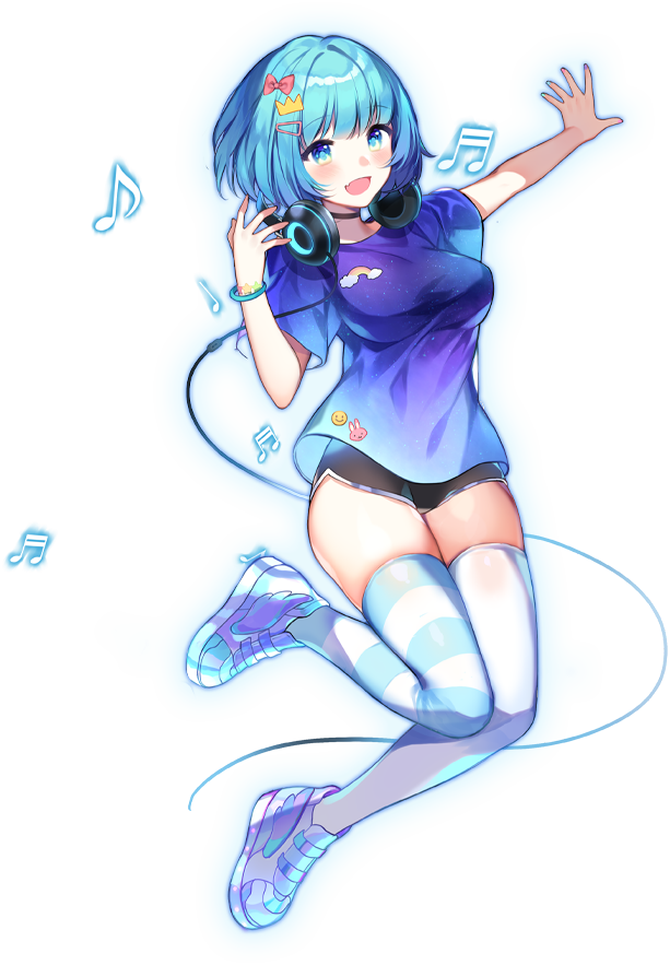 - 看板角色(Character):作为主界面及成绩结算的看板角色。点击角色可与其互动,在角色说出不同的话的时候表情也会有所改变。注册账号后即自动获取初始看板角色KALPA。获得角色的方式有以下几种:获取曲包、参与官方的推特活动、在特定节日的限时商店里购买、在普通商店里购买。