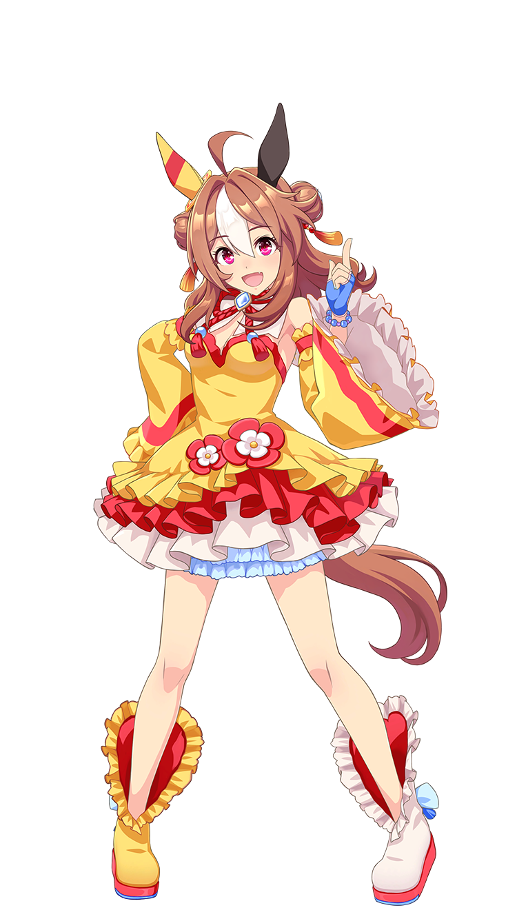 | 萌點 | 馬娘、獸耳、真·馬尾、挑染、中長髮、丸子頭、呆毛、耳套、短靴、虎牙、占卜師、元氣、口癖、星間飛行、姐姐、強運(擁有風水光環時)、冒失(失去風水光環後) | |