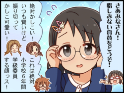 在6月22日更新的灰姑娘女孩剧场第15话里与其他带眼镜的偶像们一起 |