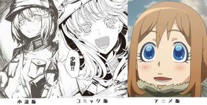 - 其在动画中的形象与小说插画和漫画中的形象形成了巨大对比,简直可以算是惨不忍睹。