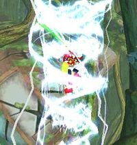 - 电压龙卷:外壳打开后,回转身体,放出垂直的电流龙卷风,会一边发动一边试图接近敌人。如果对手被波及,则会先被卷到高空,然后再猛的摔在地上(血量还有一半以下时不再使用)